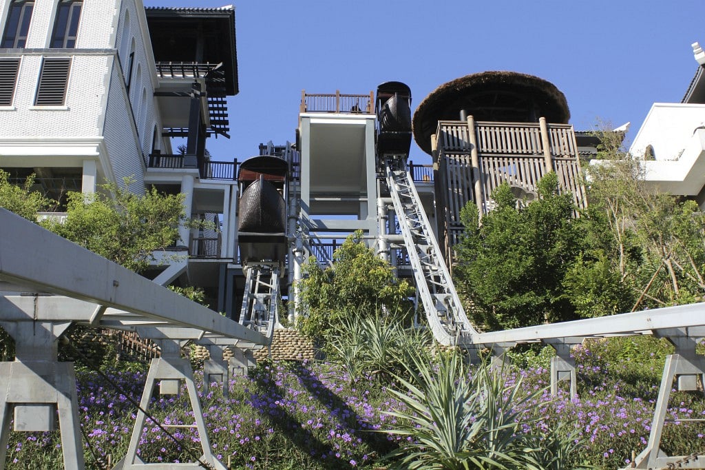 With our turning inclined lifts, the rails can make changes in direction or turn corners. The ability to make sweeping turns in the rail structure to either the left or the right allows the lift to pass around obstacles such as trees or buildings. This can soften the appearance of the rail line and gives the designer the maximum freedom to arrange buildings on the site whilst still providing convenient access for guests/ customers.